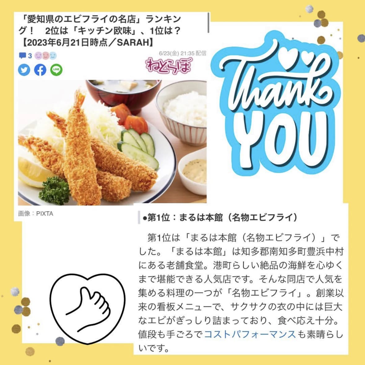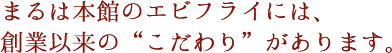 まるは本館のエビフライは、他の店とは違う味付けが魅力です。